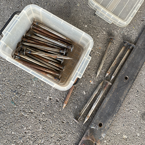 演技有りの場合は、付属のクサビで地面に固定してください